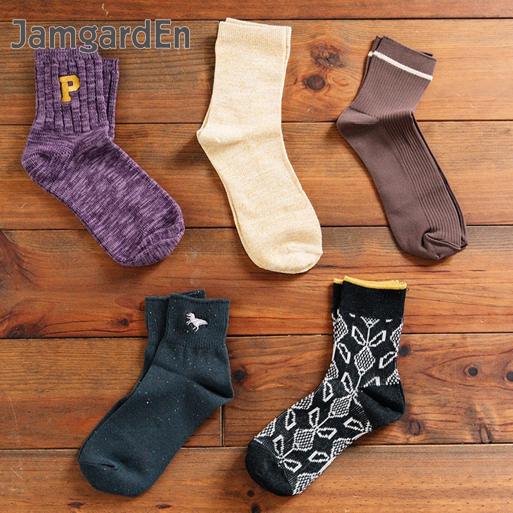 Jamgardenのベーシックライン、アクセントになるカラー物や柄物、人気のワンポイント刺繍などの靴下が入っているバリエーション豊富な5足セット。
