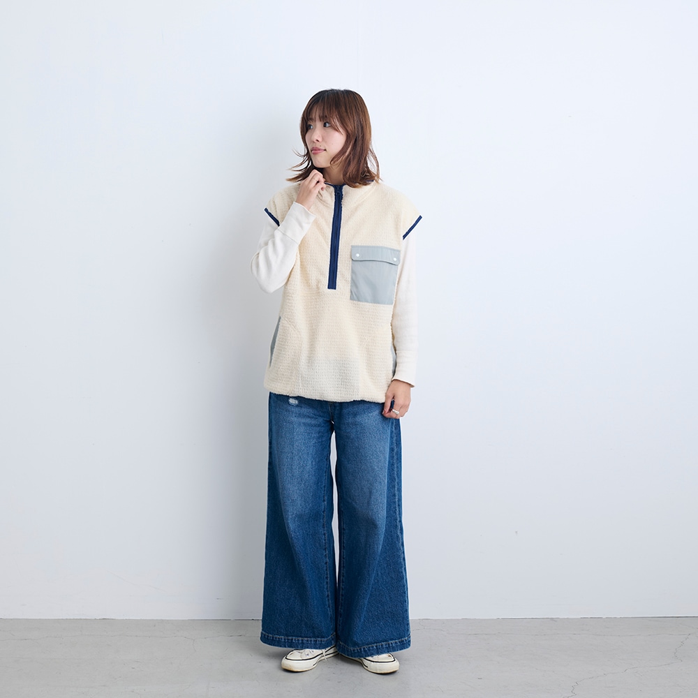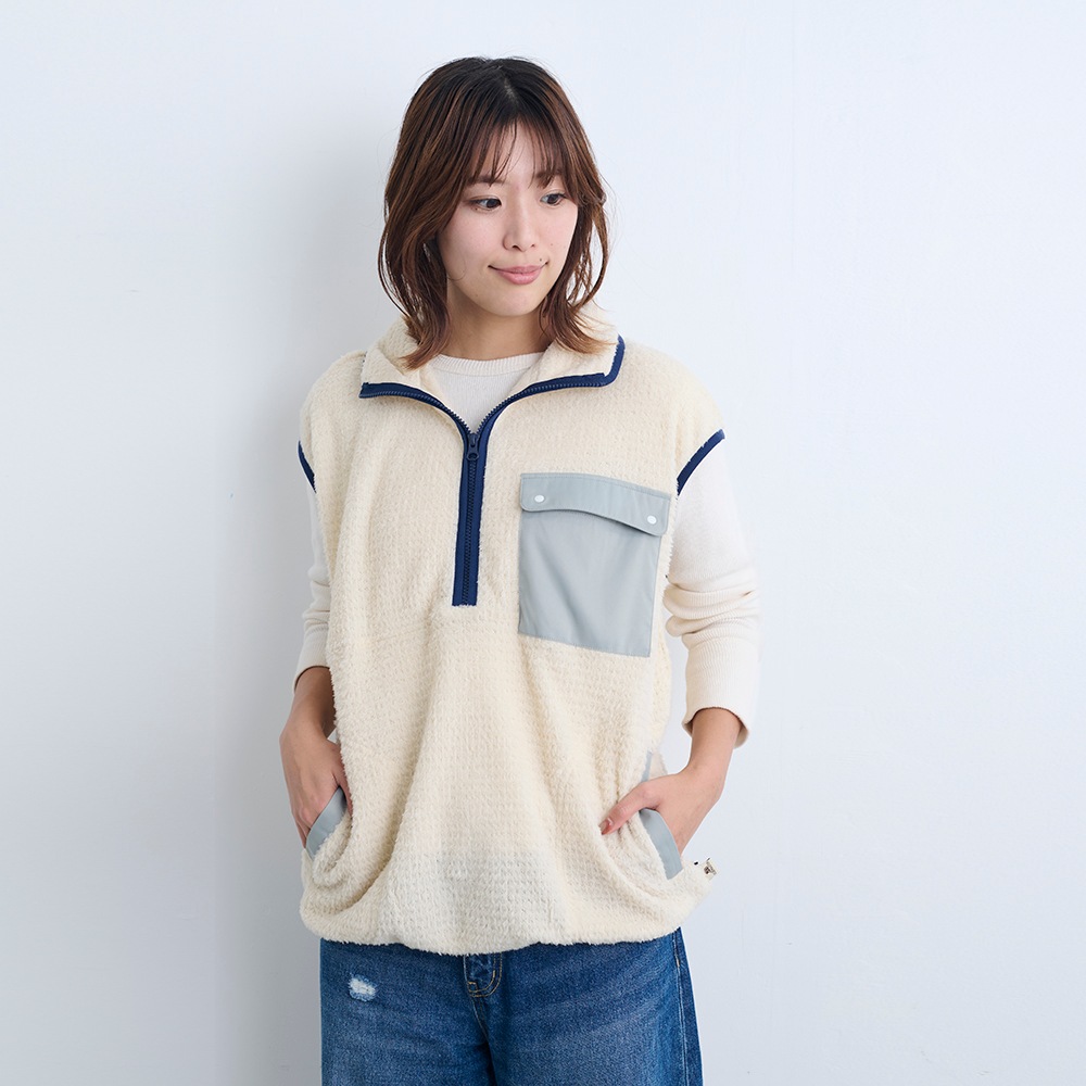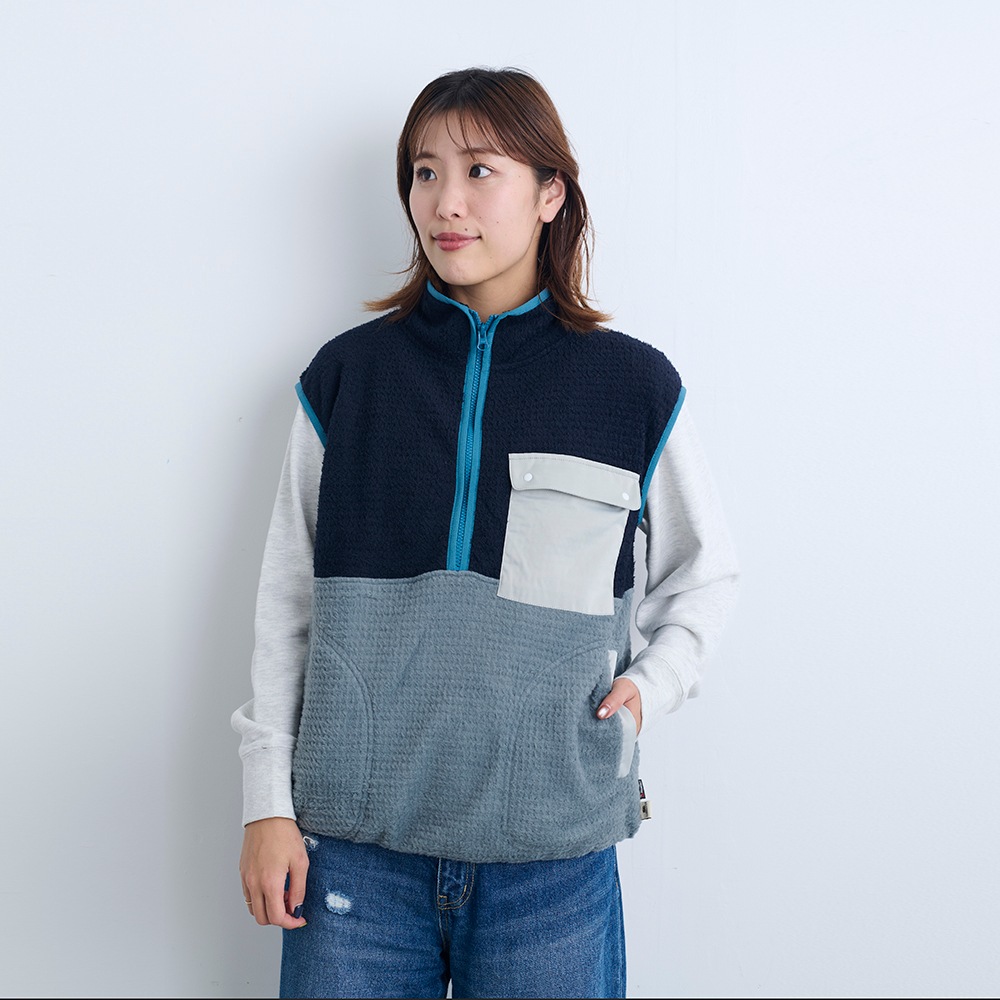 スウェットやロンTの上から重ね着しやすく、季節の変わり目やワーケーションなど、温度調整にも最適です。