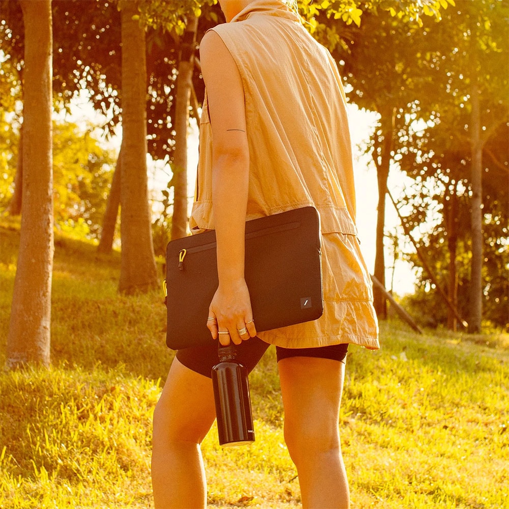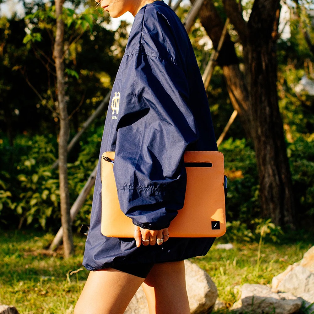 100%リサイクル素材の耐水性リップストップ生地を使用したUltralight Sleeveは、軽量素材と耐久性に優れた保護性能を融合し、大切なデバイスを衝撃や傷から守ります。