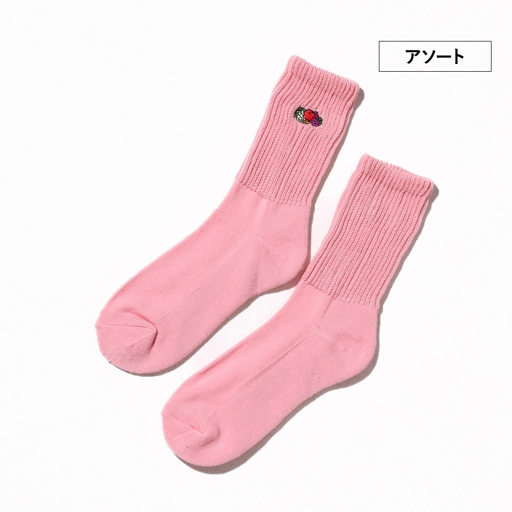 3P ゆるリッチェル編み 刺繍ソックス2 23~25cm