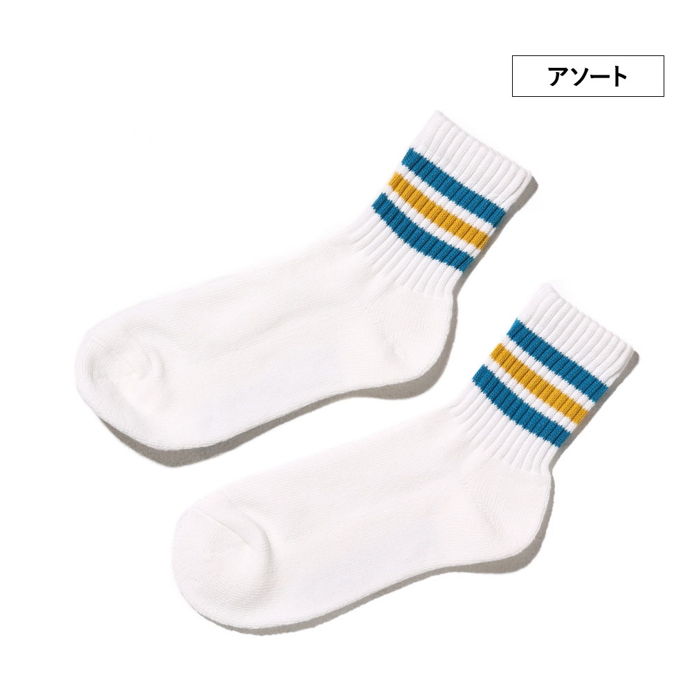 ホワイトベースにそれぞれ異なる配色ラインを施し、コーディネートのポイントになるデザインに仕上げました。