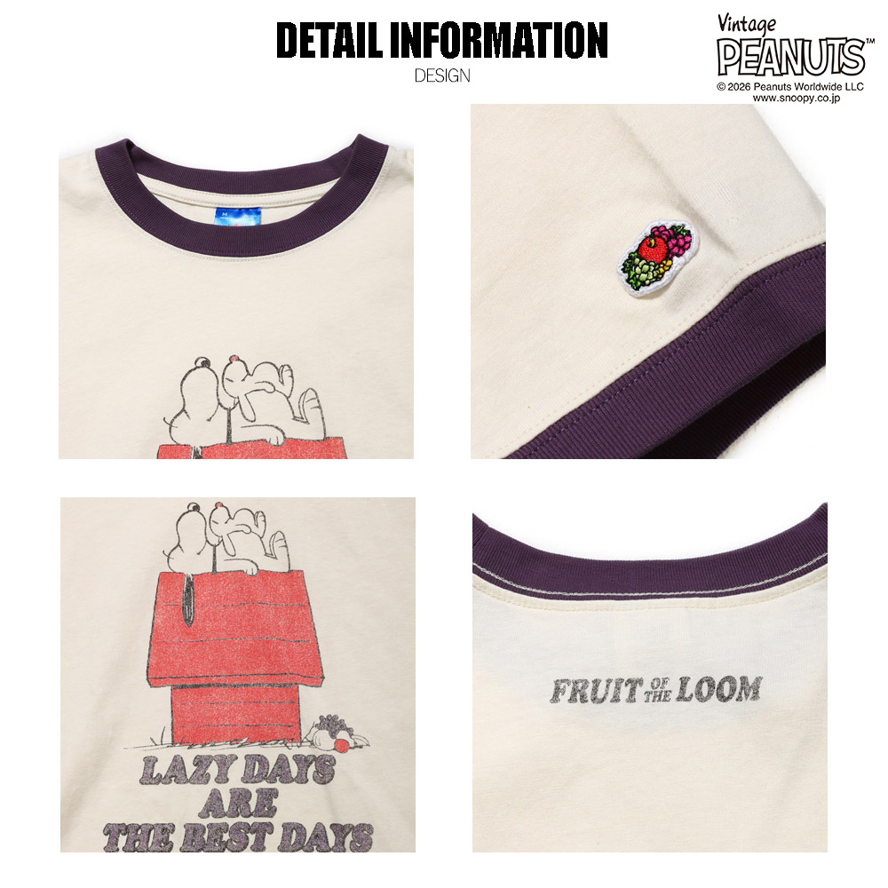 Fruit of the LoomのPEANUTSコラボデザインから登場した、ヴィンテージアートデザインが魅力の半袖Tシャツ。