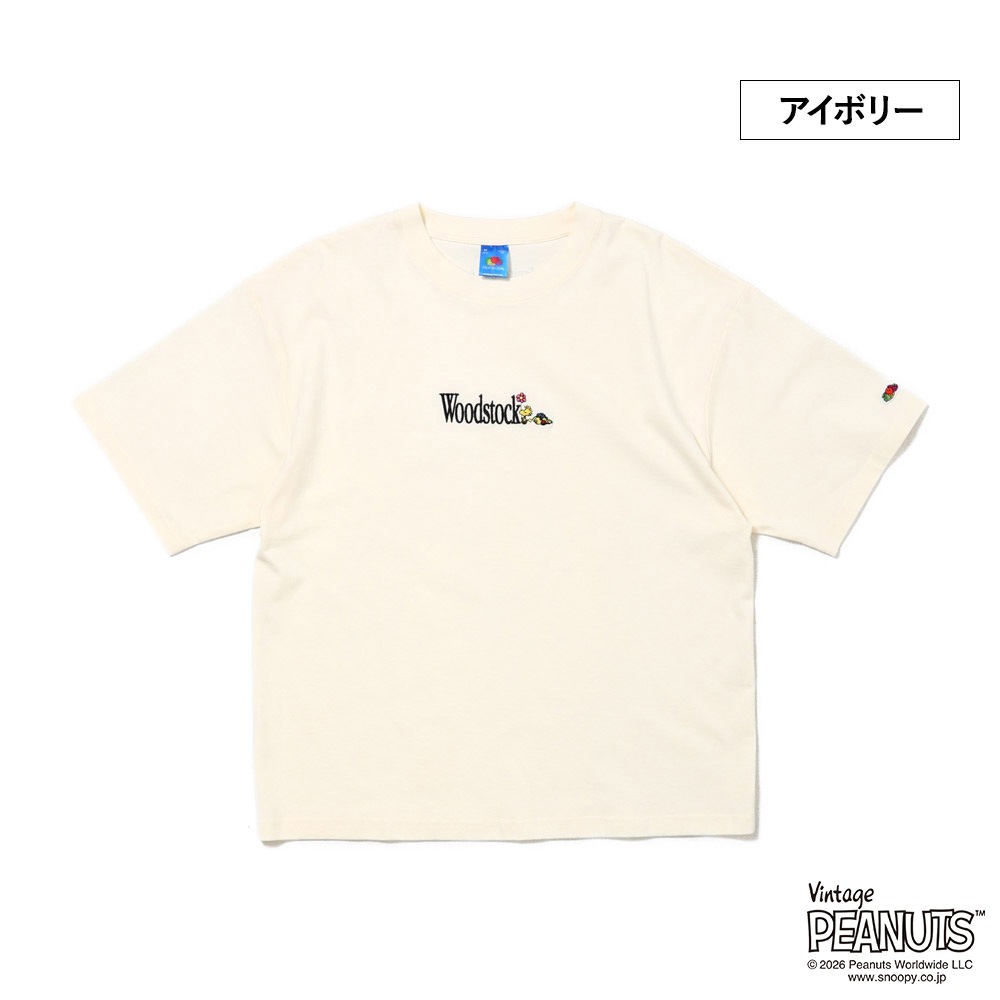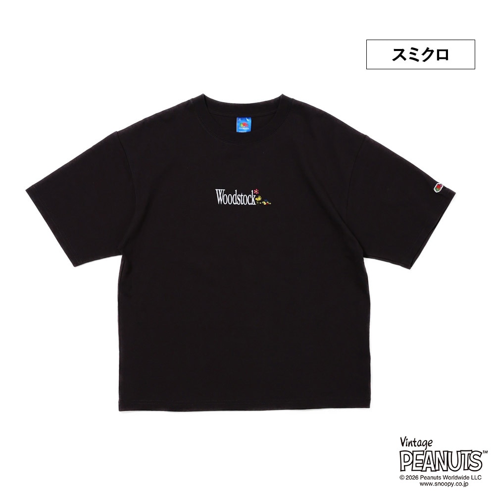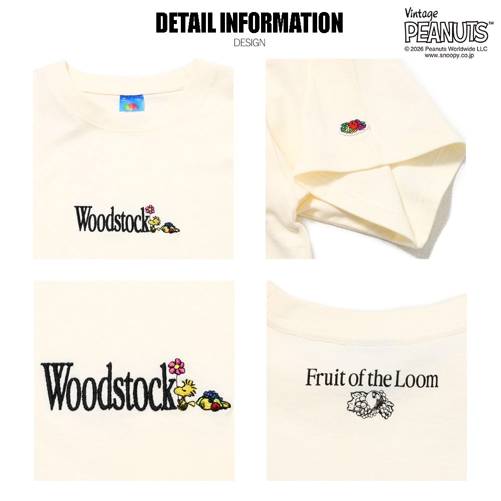 フロントには、ウッドストックと「Woodstock」の刺繍ロゴを配置。