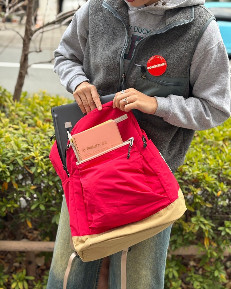 出勤バッグは日によって変える派です!DIZZY PACKはポケットが中にも外にもたくさんあって、必要なものを分けて収納できます。